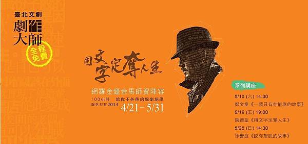 幾個星期前因緣際會,從學校的職涯參訪活動中獲悉今天台北文創將會舉辦一場免費的編劇講座,當時雖然失禮的對講者的名字感到陌生,但是看了她的作品列表以後,要忍住不報名還真是頗難的一件事。(笑)