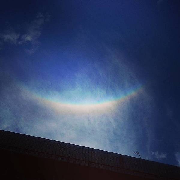 前天傍晚,我下班了正要騎腳踏車回家,不知道為什麼突然想要抬頭望。驚鴻一瞥不得了,頭頂上方竟然出現一道不可思議的彩色光弧,像天空的微笑一樣,旁邊佈著幾縷羽毛般柔美的雲絮,那一刻,我幾乎要相信天使真的存在,送我一份這樣可遇不可求的臨別禮物。